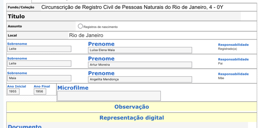 O filho do português está vivo, mas não se lembra onde foi registrado. Diz que morava e nasceu no Centro do Rio, nos arredores da Rua do Ouvidor. Todos os irmãos faleceram.