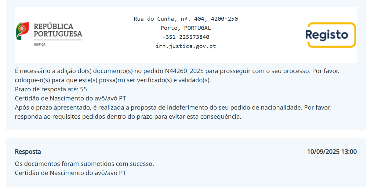 Boa tarde, passando pra dizer que até que enfim,rs todos os documentos do meu pai (filho do portugues) estão em mãos, devidamente apostilados e prontos para o envio.