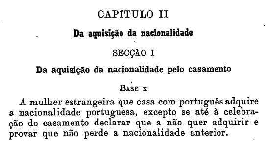 Ótima notícia! A base X é por conta de uma lei antiga de 1959 que foi revogada pela atual lei da nacionalidade (de 1981). Basicamente o que essa lei dizia é que a mulher estrangeira que se casasse com um português automaticamente se tornava portuguesa.