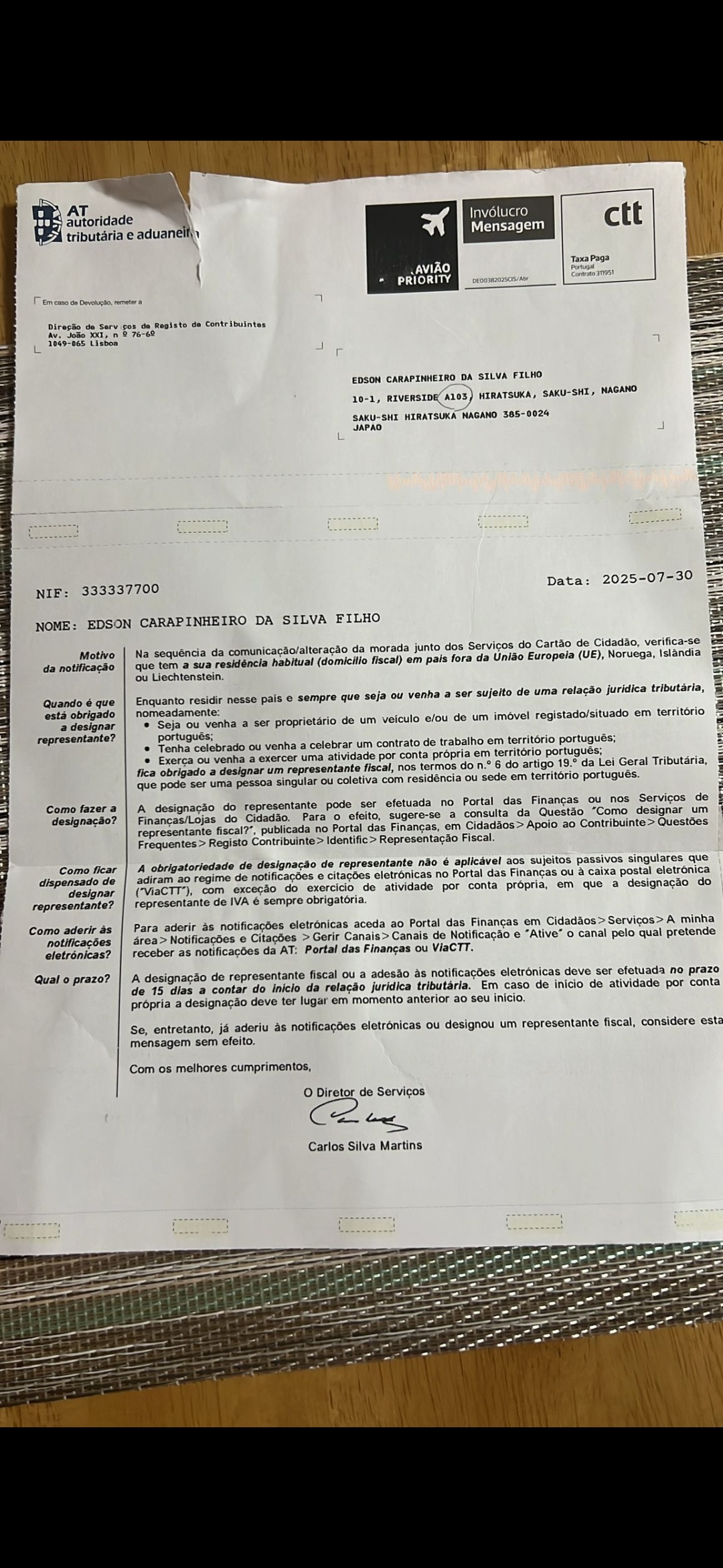 @ecoutinho boa tarde, meu pai está recebendo as cartas de Portugal no endereço antigo , vc sabe como mudar o endereço ?