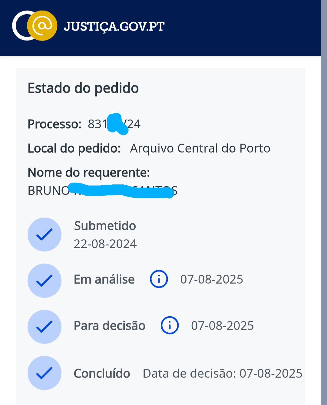 Vim compartilhar que meu local de pedido atualizou hoje (07/08), 7 dias depois do pedido submetido e consta: Arquivo Central do Porto!
