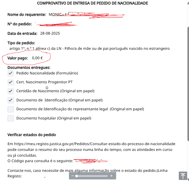 @CarlosASP e @eduardo_augusto agradeço pelo retorno de vcs ( nossa conversa de final de agosto de 2025 ). Recebi as respostas da minha pergunta no dia lá, eu chorei pra caramba, porque eu fiquei arrasada mesmo, de saber que iria demorar muito mais em Lisboa do que em Porto, e que talvez só receberia a chave de acesso e a senha somente ano que vem. Qual não foi a minha surpresa. O Meu DHL chegou lá em Lisboa em 28/08/2025 ( 1 C Transcrição ) - e já recebi a senha e numero de processo por e-mail em 29/09/2025, exatamente um mês depois. Foi uma surpresa boa pra mim. Estou avisando aqui vcs. pra atualizar mesmo. E tbm quero tirar mais uma duvida com vcs:. Estou com três processos aqui pra postar no DHL e quero saber se posso mandar todos os três dentro do mesmo envelope DHL. Sendo que dois são de 1C ( filhos transcrição ) e 1 é de Neto ( 1 D). Vou mandar tudo pra PORTO, é isso né? Outra duvida, sobre o meu processo de 1 C, ali no papel que veio pelo e-mail diz que eu paguei 0,00 euros na verdade eu paguei os 175 euros, eu tirei o formulário 1C e veio o numero do pagamento que eu fiz pelo cartão de credito. O que posso fazer pra regularizar isso?