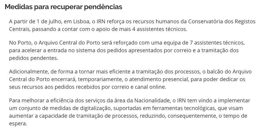 Na minha família no brasil tem 12 pessoas com nacionalidade originaria obtida, dessas somente uma vive aqui e outra em Londres, o resto tem nacionalidade somente para livre transito com passaporte português, não é justo pensar que processos assim tem a mesma prioridade de processos de mesmo teor de pessoas que estão a ter um dano real qualquer, não estou a dizer que a boiada deveria passar a frente mas deveriam haver níveis de prioridade diferenciadas mediante solicitação e comprovação do dano, mas é tanta desorganização que querer isso é querer de mais.