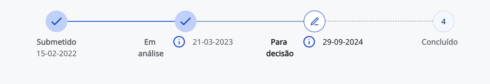 Uma pergunta, olhando para a tabela a coluna da direita chama-se data da análise. Agora fiquei assustado, porque o inicio do processo da minha esposa é de 15-02-2022, mas a data de em análise aparece como 21-03-2023. A qual das duas datas corresponde?