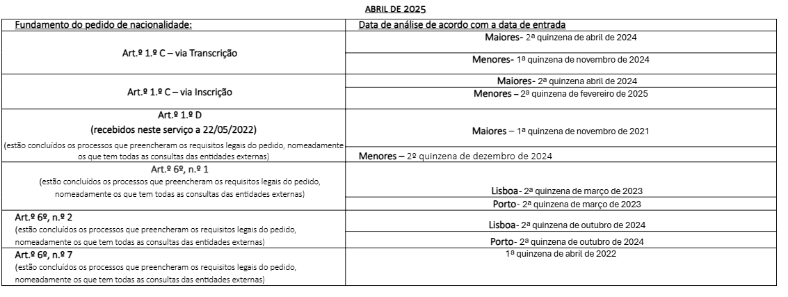 Aguém tem noticias de como estão os andamentos dos processos da Conservatória de Lisboa em abril de 2025?.. Obrigada