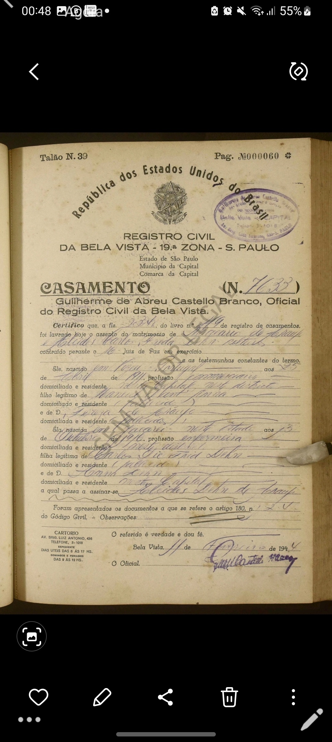 Segundo a certidão de casamento, seu avô Macário Araújo, nasceu em 1911. (25/04)