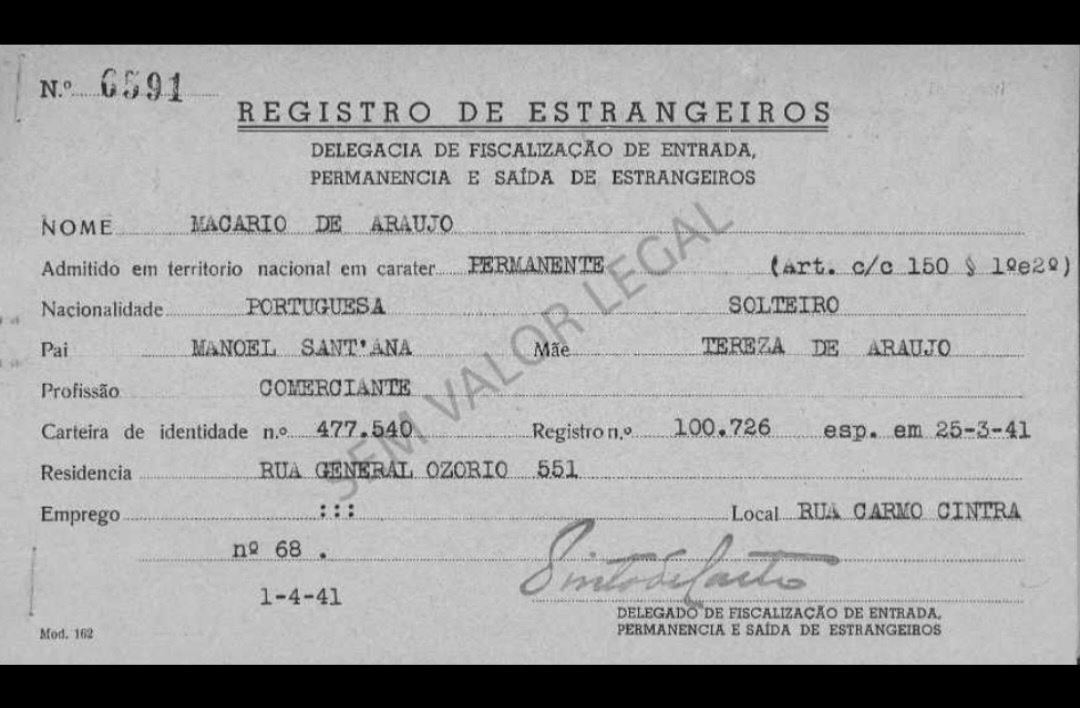 Seguem informações e anexo. Meu Avô Macário Araújo, nascido em 25.04.