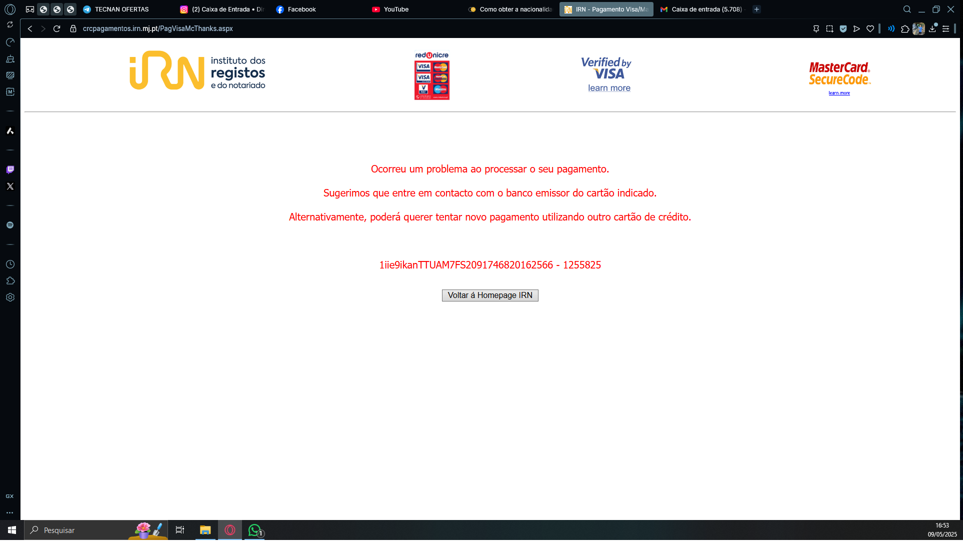 Problema com Pagamento da taxa de €175 para adquirir cidadania portuguesa.