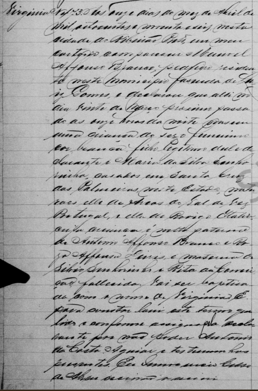 Creio que foi o registro do nascimento da Virginia, filha de Manoel.