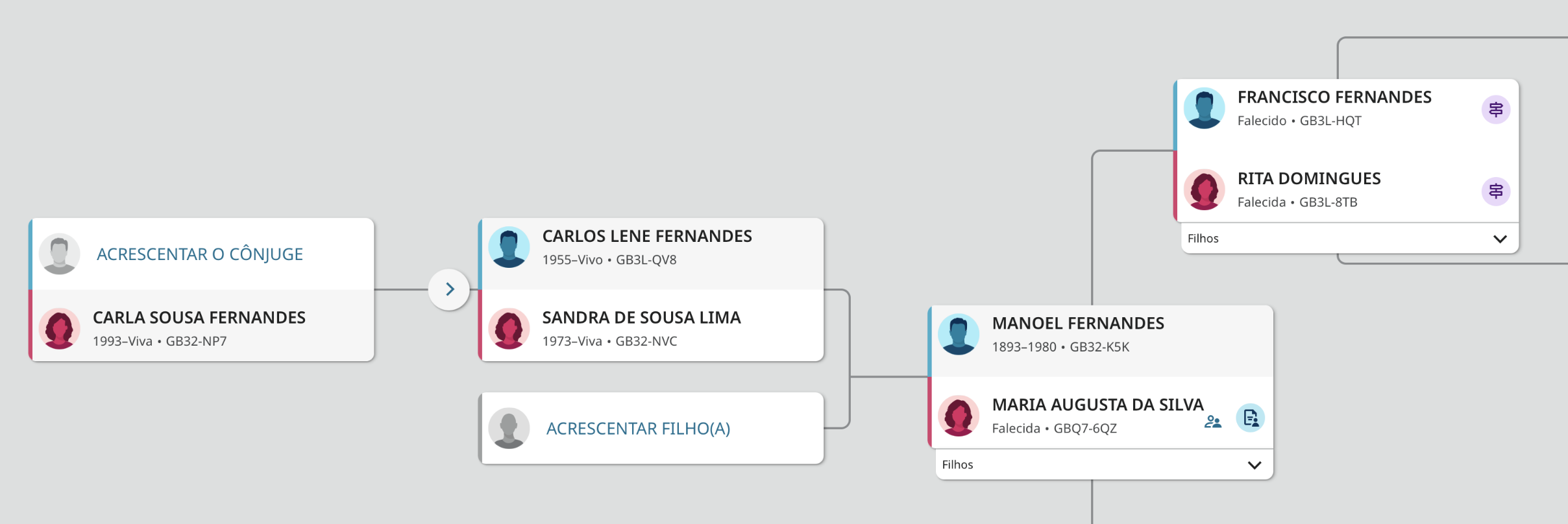 Em uma tentativa de contextualizá-los, está a minha árvore genealógica, a relação seria: MANOEL (avô PT) - CARLOS (pai BR) - CARLA (eu BR).