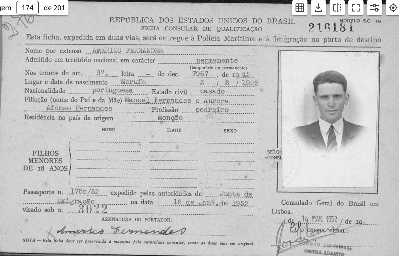 Manoel e Aurora se casaram em Portugal, e tiveram como um dos filhos Américo Fernandes, que também nasceu em MERUFE, MONÇÃO, VIANA DO CASTELO, PORTUGAL, vejamos: