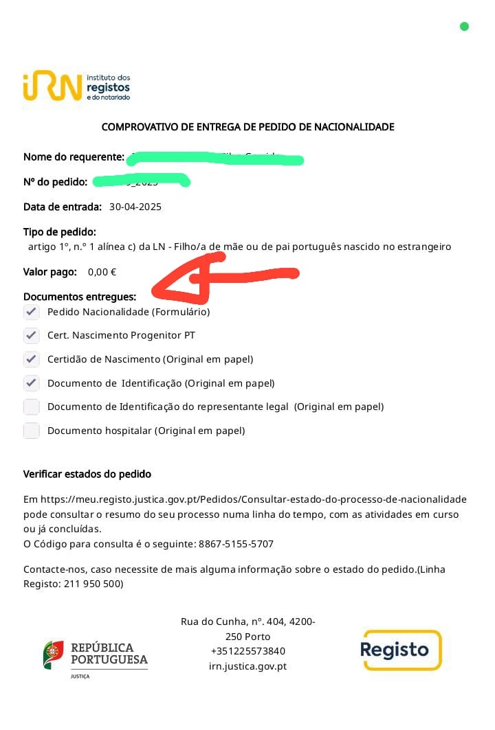 Boa noite. Enviei minha documentações para pedido de nacionalidade e me geraram algumas dúvidas. O meu pedido chegou a ACP, receberam, deram início ao processo, mais fiquei preocupado em questão do valor, colocaram que paguei € 0,00 sendo que, enviei o formulário com os dados de pagamento, pois efetuei o pagamento online. Sabem me dizer se é normal? Ou deveria enviar novamente o formulário preenchido e reconhecido firma? Queria enfatizar que enviei 2 formulários diferentes, os 2 reconhecidos firma, por causa do enquadramento da assinatura em página frente e verso etc. Foram o formulário que diz sobre pagamento em cheque e o formulário que enviam, após o pagamento na IRN.