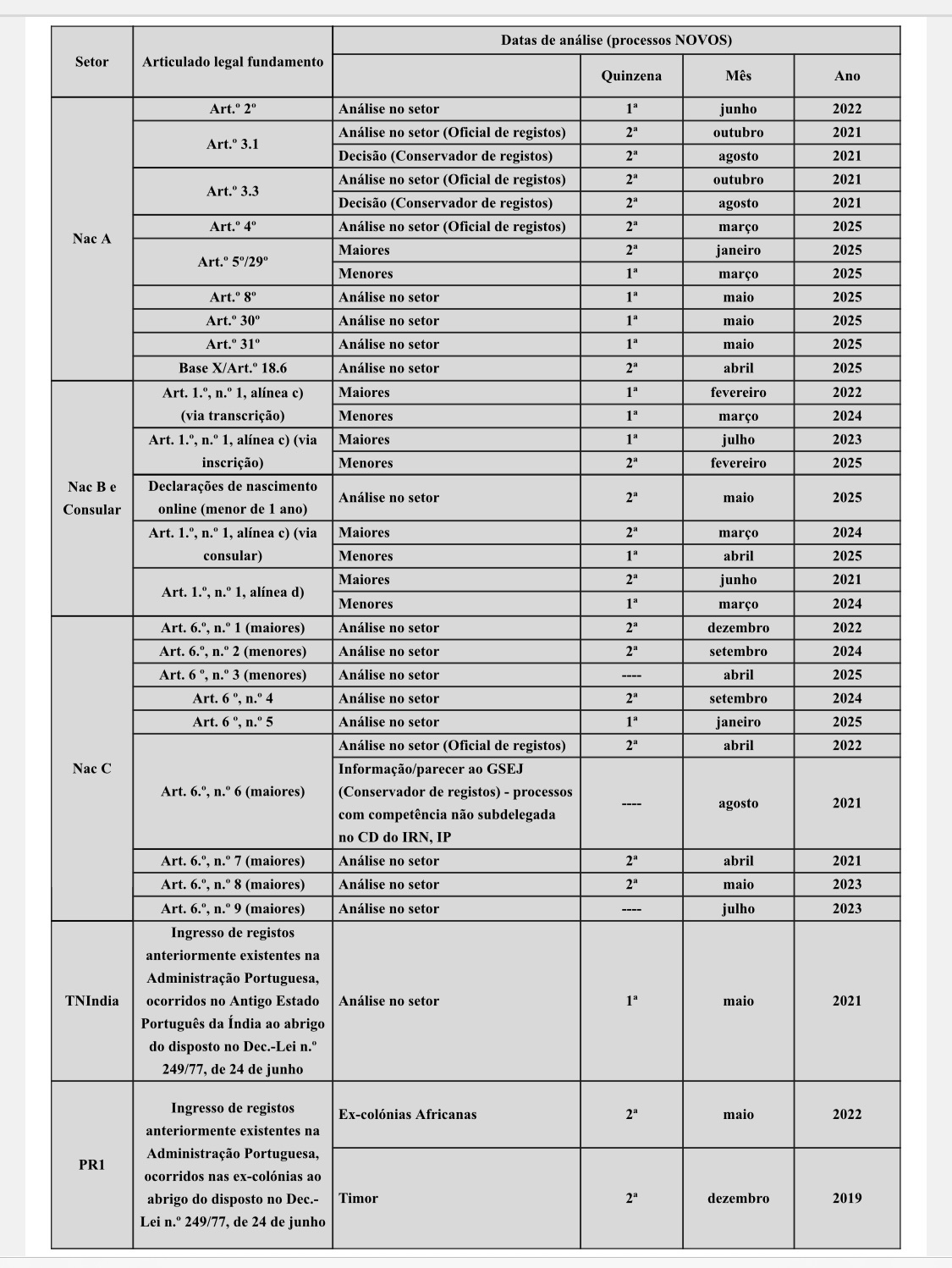Eu recebi da CRC um email com a tabela abaixo , pois dei entrada na nacionalidade por casamento . A minha dúvida é em qual parte da tabela será. Meu processo ?