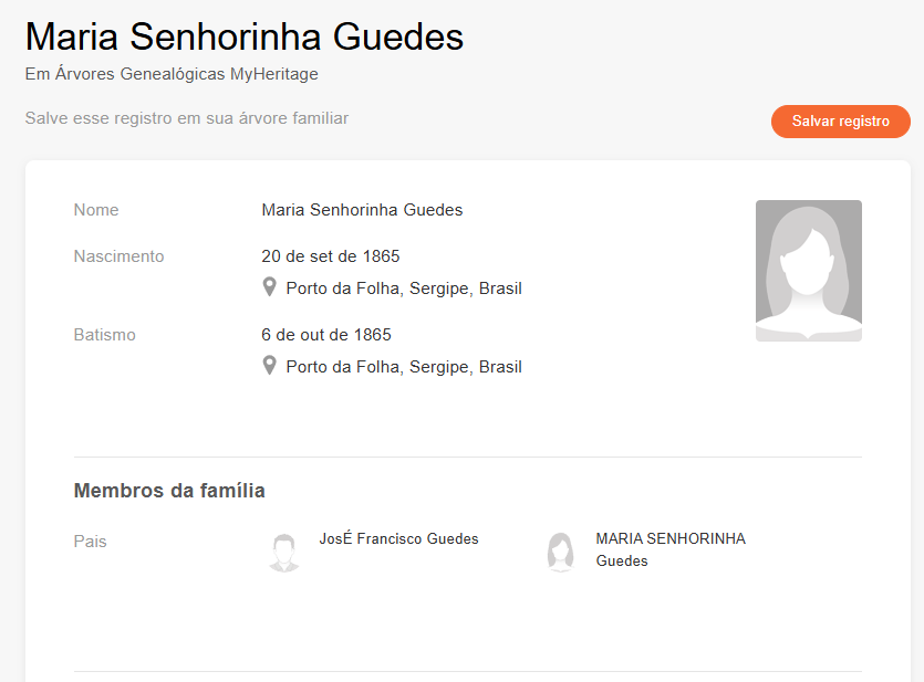 @LuanParanhos, o usuário do MyHeritage respondeu o seguinte: "Vou fazer o seguinte. Vou colocar os seus dados na minha árvore e começar a realizar as pesquisas. Tenho alguns livros que não constam no family. Vamos ser se lá consta algo mais." Caso ele me mande alguma informação no futuro, informo.