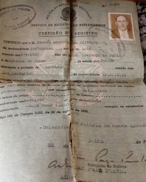 Abaixo a imagem da certidão de registro de estrangeiro do meu avô Manoel: