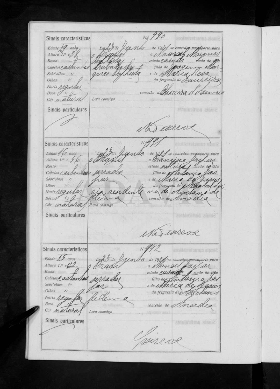 Na idade adulta o português adotou somente o nome do pai. O mesmo nome passou para filho e neto.