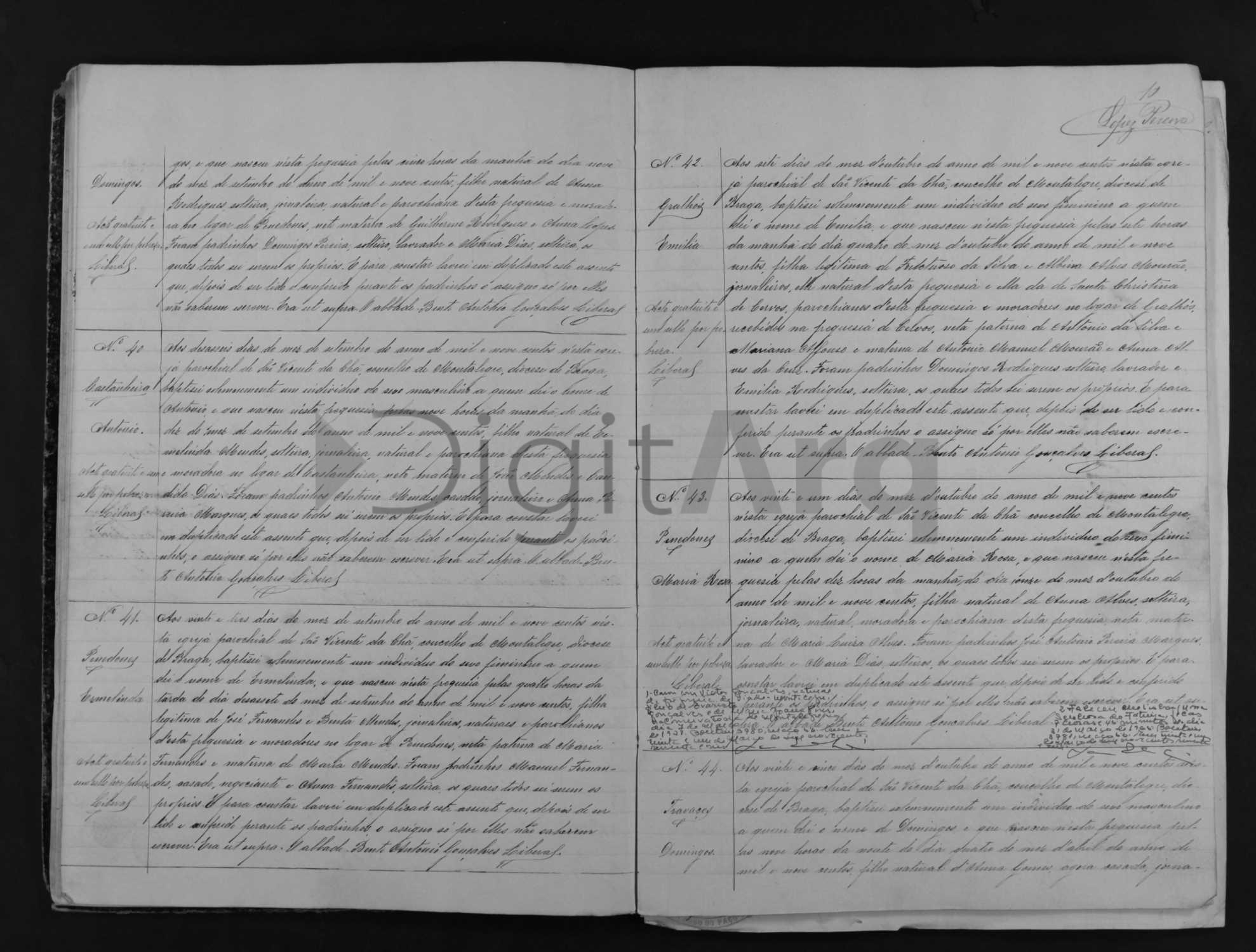 Eu achei uma declaração de batismo anexada à certidão de casamento de antonio emilio mourão,.onde ele declara ser de Cervos e ter, no ano do casamento em 1894, 40 anos. Tinha 2 testemunhas portuguesas e que estava no Brasil há 15 anos, o que se supõe que ele tenha chegado no Brasil em 1879, o que bate pois ele estava em Portugal em 1878, batizando alguém, certo?