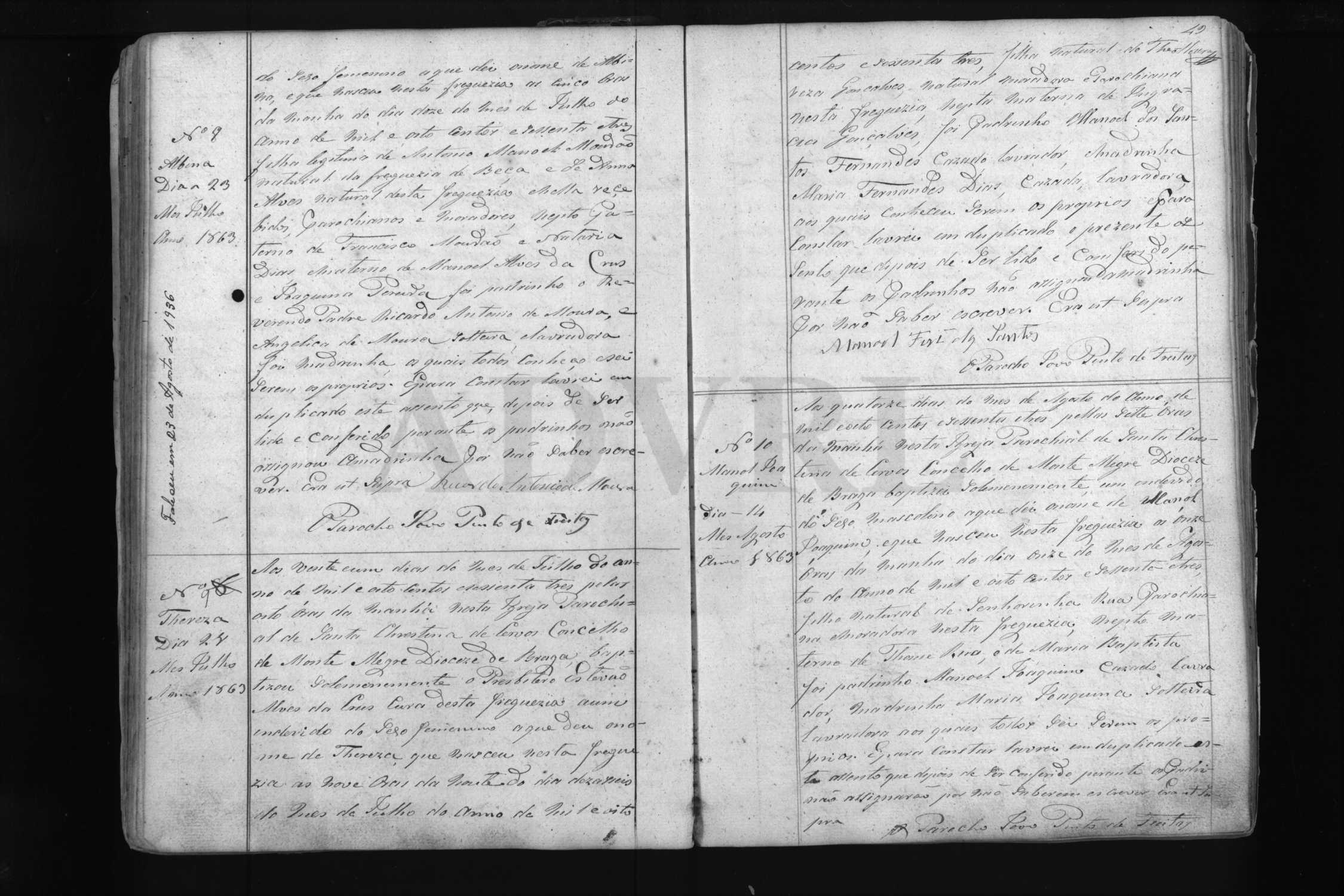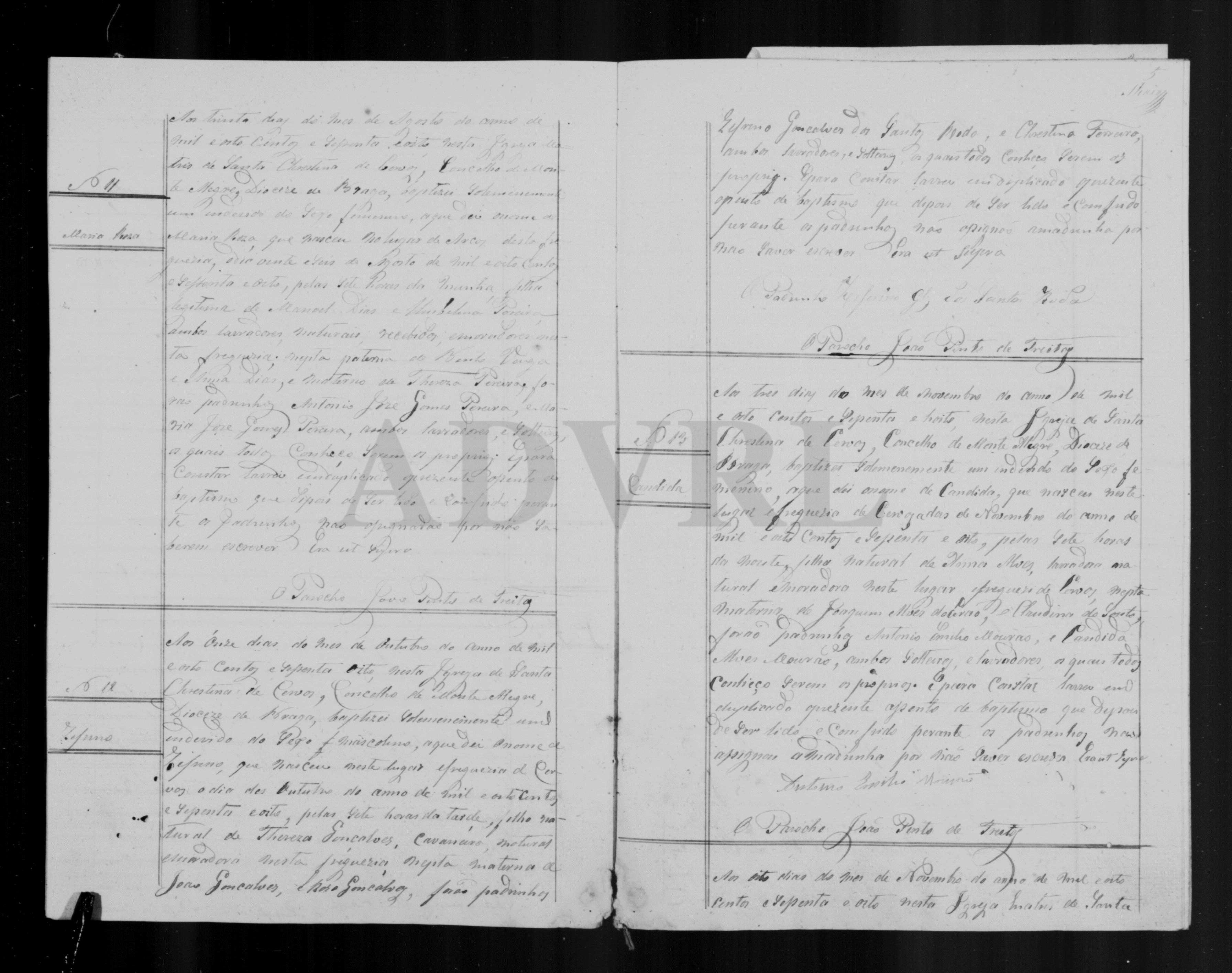 • Batismo de quatro filhos de Florinda e um filho de Albina, todos em Cervos