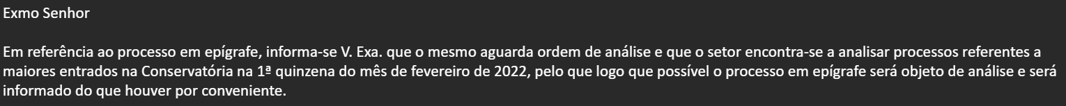Entretanto contactei o departamento de retificações dos registos centrais no qual me confirmaram o meu processo como podem ver a seguir: