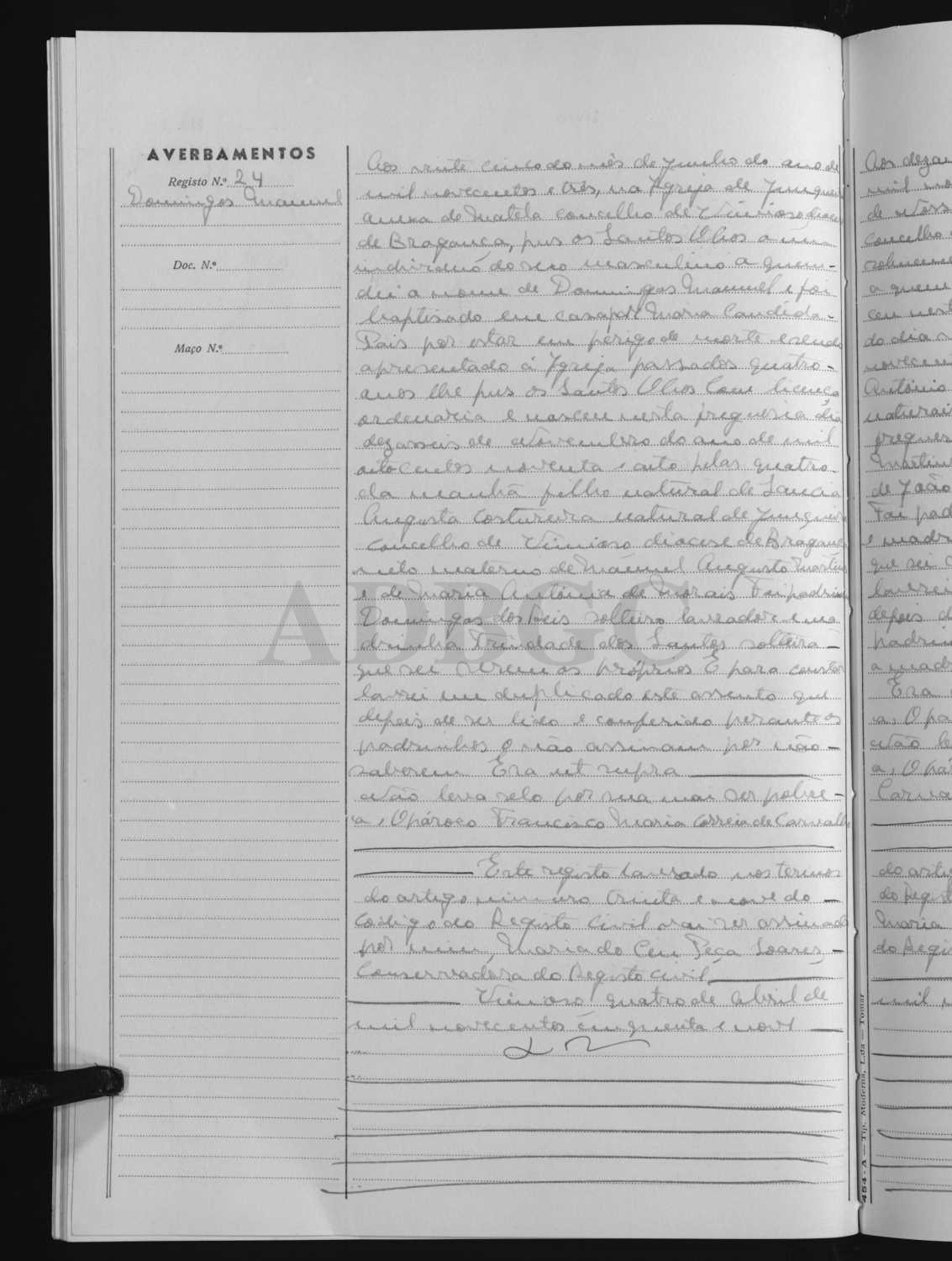 Neste documento do seu tio podem constar informações úteis para confirmar o local de nascimento do Sr Domingos.