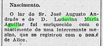 Nascimento de Alice (a da notícia acima): https://www.familysearch.org/ark:/61903/3:1:S3HY-DR83-PT3?view=index&personArk=%2Fark%3A%2F61903%2F1%3A1%3A79WR-F5N2&action=view&lang=pt (contém os nomes do pai do José como avós paternos)