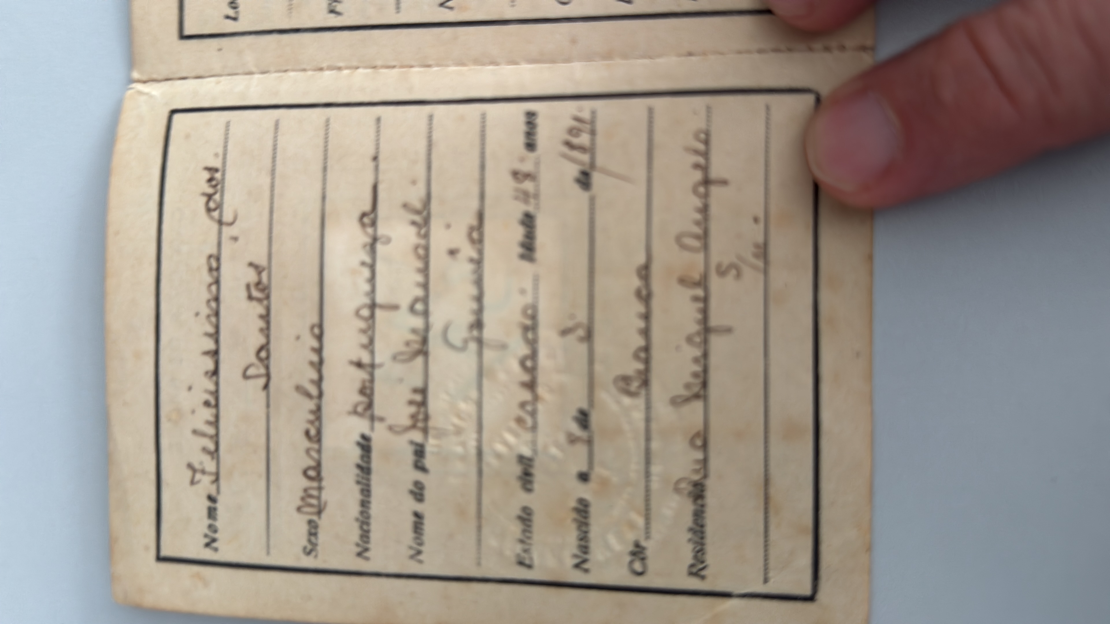 @Wal1sa genealogicamente falando, nao tenho duvidas. Felicissimo "dos Anjos", que veio ao Brasil conf. passaporte que lhe encaminhei acima, tem a mesma data de nascimento e mesma filiação de Feliciano "dos Santos", que provavelmente adotou o "dos Santos" emprestado da esposa. "Dos Anjos" (assim como "dos Santos", "dos Reis", "de Jesus" etc geramente eram sobrenomes devocionais e nao existia tanta rigidez quanto a obrigatoriedade de utilizacao do sobrenome paterno. Não eram incomuns tbm se ver alterações de sobrenome ao chegar no Brasil. Um antepassado meu acrescentou "do nada" o sobrenome "Viana", inventado por conta propria e sem qualquer documento "formal" a prova-lo; descobrimos depois que era pq nasceu em Viana do Castelo... Já vi caso de portugues que passou a usar como sobrenome algum sobrenome do avô ou até bisavô, nome da cidade de onde veio, nome de profissão, algum "apelido"(vulgo, ex José "Magro") e até o nome do barco que o trouxe para o Brasil... Para o processo de nacionalidade é preciso que voce, que é o unico responsavel por seu processo, decida qual caminho tomar. Ou manda desta forma, acreditando que o conservador nao vai se conformar com o conjunto da obra e nao vai exigir nada (e estando preparado para retificar caso necessario) ou já retififca de uma vez antes de enviar, que eria entre aspas o "caminho seguro". Infelizmente não tem resposta certa/errada neste quesito... avalie o conjunto dos seus documentos e tome a sua decisao de forma consciente acerta dos beneficios/maleficios de sua opcao. Boa sorte!