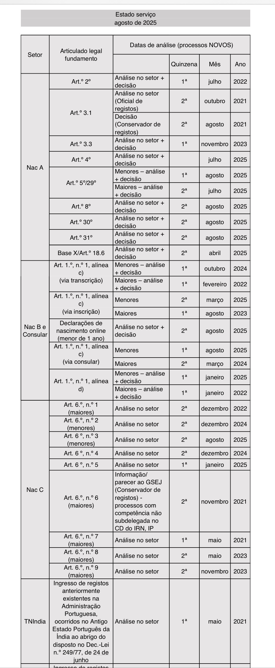 • Sei que o pedido de nascimento leva um ano, mas qual é o tempo para processar esta transcrição de nascimento inicial?