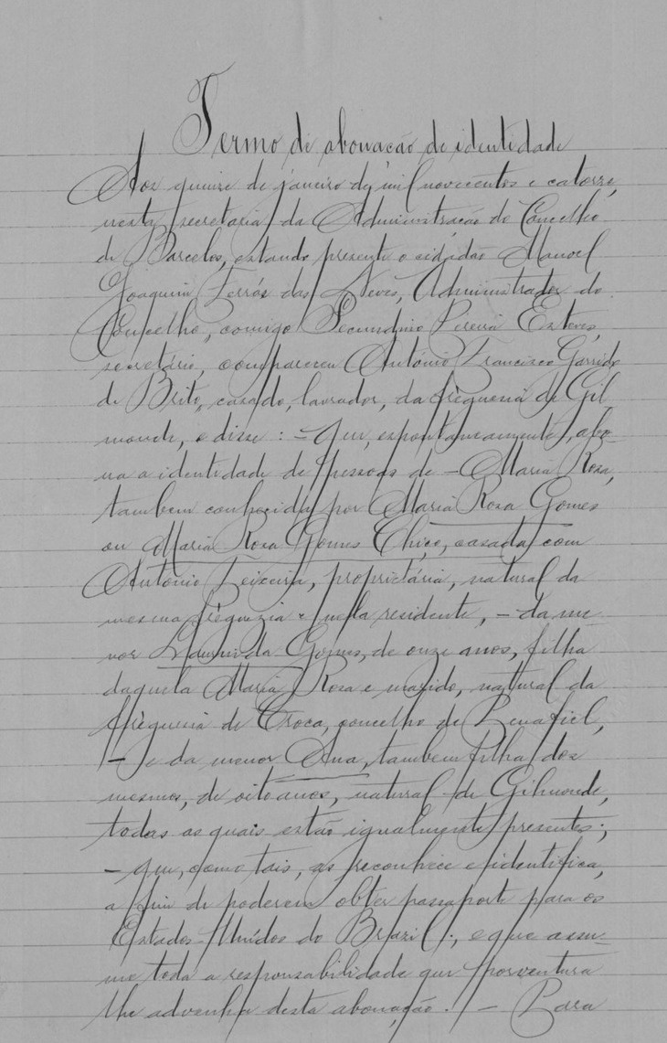 Assim, a divergência está no fato de que, na certidão de nascimento da mãe do meu pai, a mãe da portuguesa consta apenas como “Rosa Gomes”, enquanto nos demais documentos o nome completo aparece como Maria Rosa Gomes (com ou sem o sobrenome Chiço).