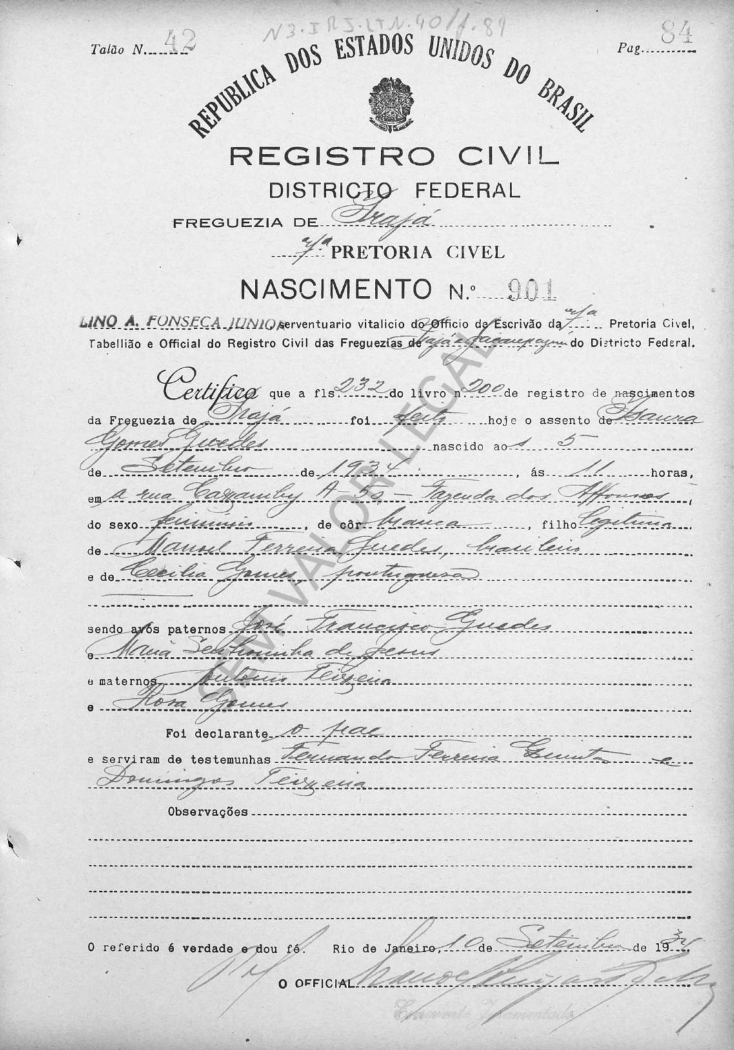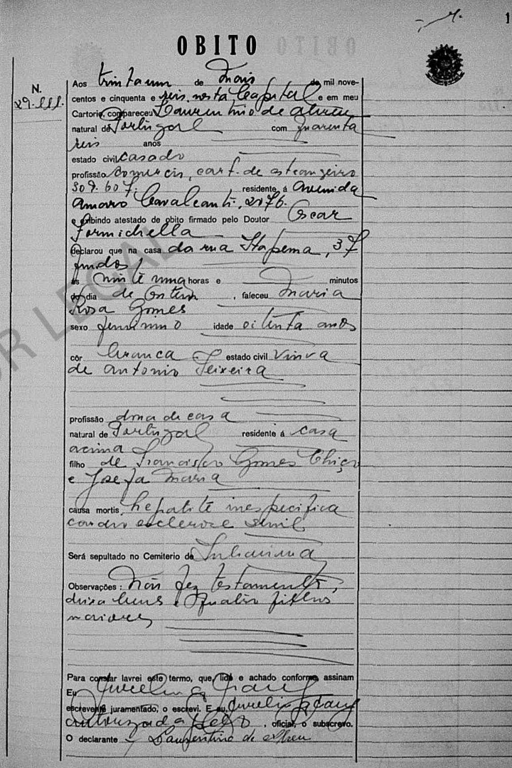 Abaixo, deixo a certidão de nascimento da minha avó, na qual é possível verificar que a avó dela consta como Rosa Gomes, para melhor análise.