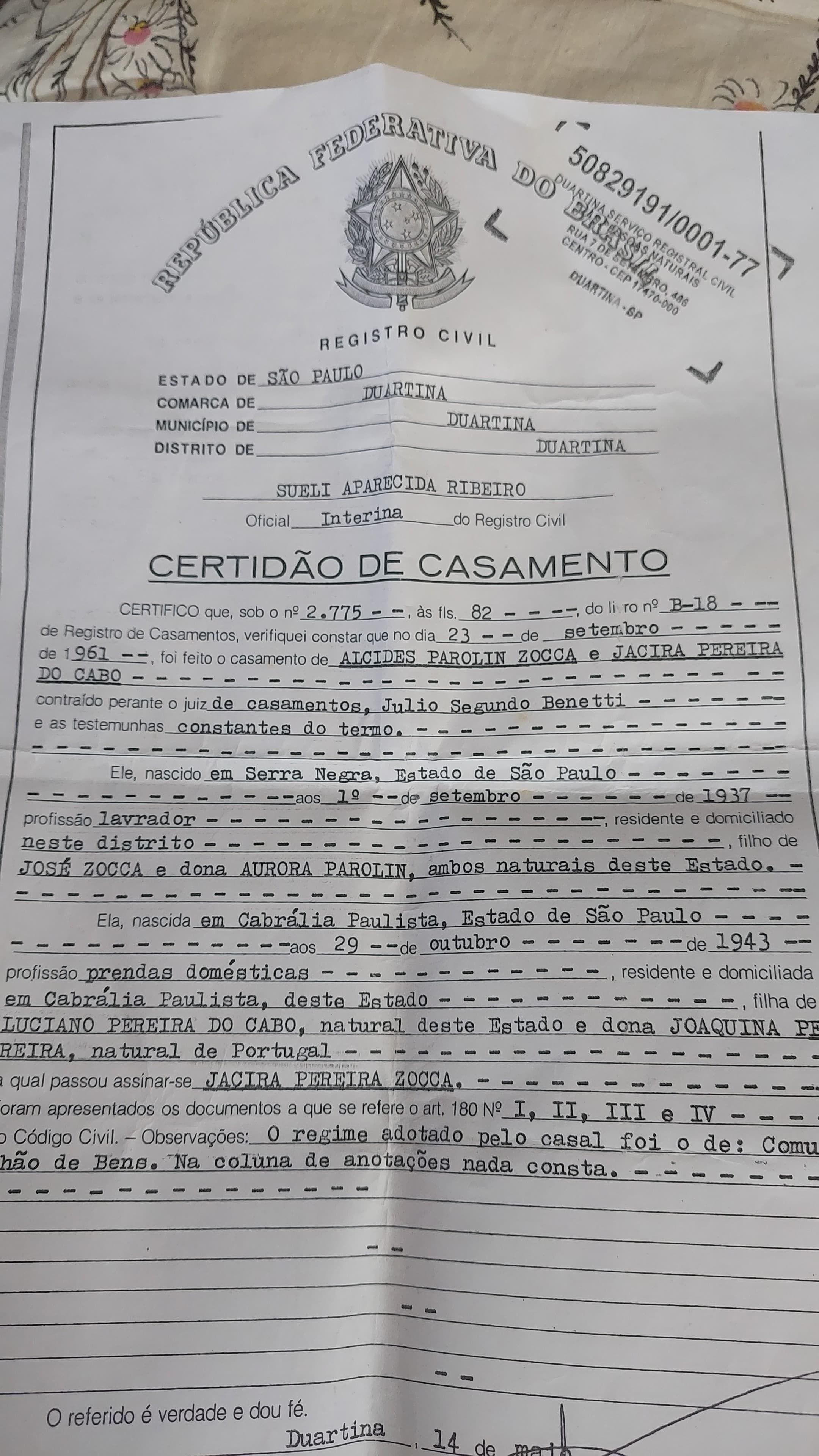 @Bruce Willian Qual o nome do marido da Joaquina e em qual cidade moravam no Brasil. Possui a certidão de casamento ou a certidão de nascimento de um dos filhos?