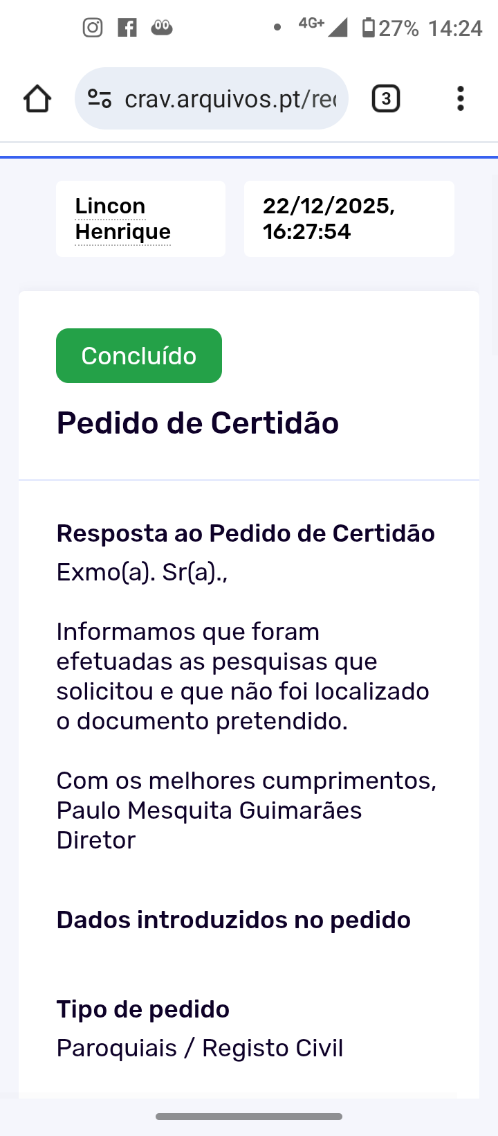 Alguém consegue me ajudar a encontrar o documento de assentamento de batismo dele em Portugal, é o documento que estou tendo bastante dificuldade, tenho bastante informações mas não acho e o adv cobra muito caro para tentar. Agradeço desde já !