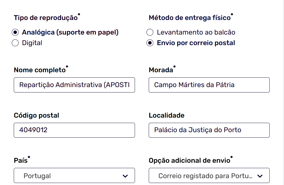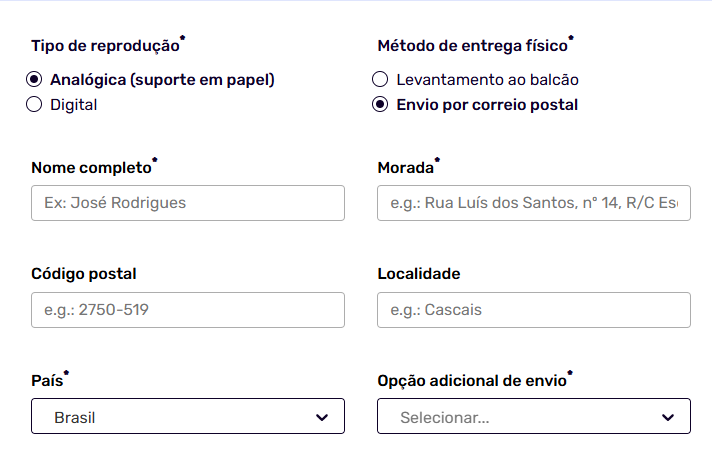 Como está no Brasil, vai solicitar ao Arquivo para enviar directamente para:
