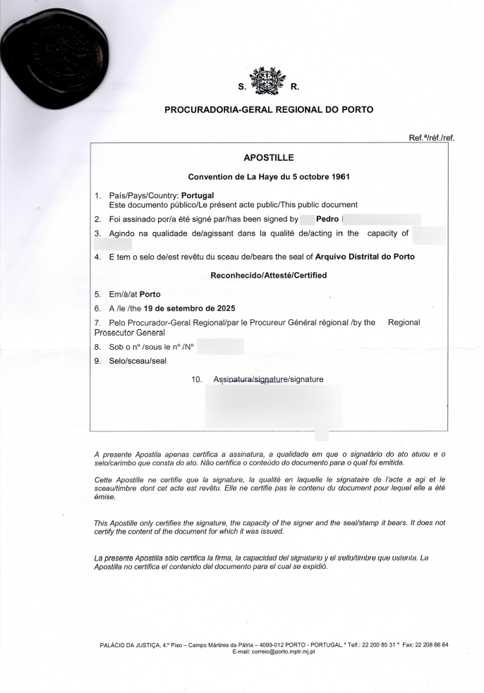 Primeiro, entre em contato com a PGR do Porto para saber como solicitar o serviço de apostila.