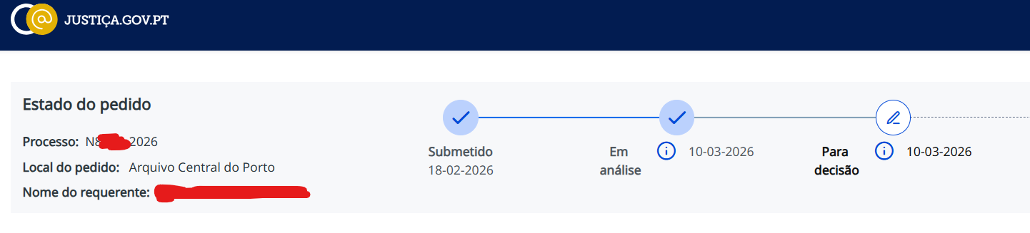 Na minha própria família teve processo 1D Menor concluído em menos de 70 dias logo no início de 2026, que não está na planilha porque não fui eu quem fez, mas agora mesmo tenho processo de 1D Menor em andamento (abaixo e incluso na planilha) e que, ao que parece, tem tudo para terminar nesse prazo de até 90 dias. Começou a movimentação em tempo recorde para minha experiência com todos os processos de cidadania da família.