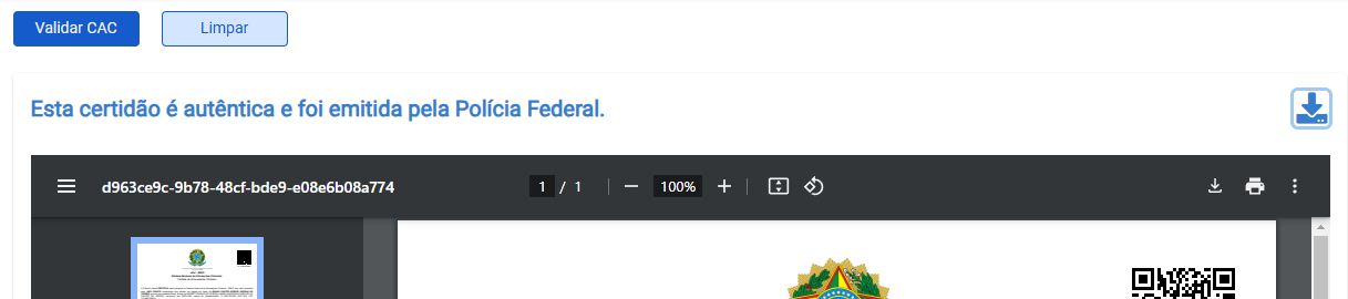 Exato! Antigamente existia a emissão "de uma página" de que aquela Certidão de antecedentes criminais era autêntica; após a referida consulta.