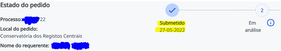 @Marta Vianna , quando a gente pesquisa o processo, aparece a data "submetido", que é a data que o processo chegou na conservatória. Acredito que seja essa a data a que se referem.