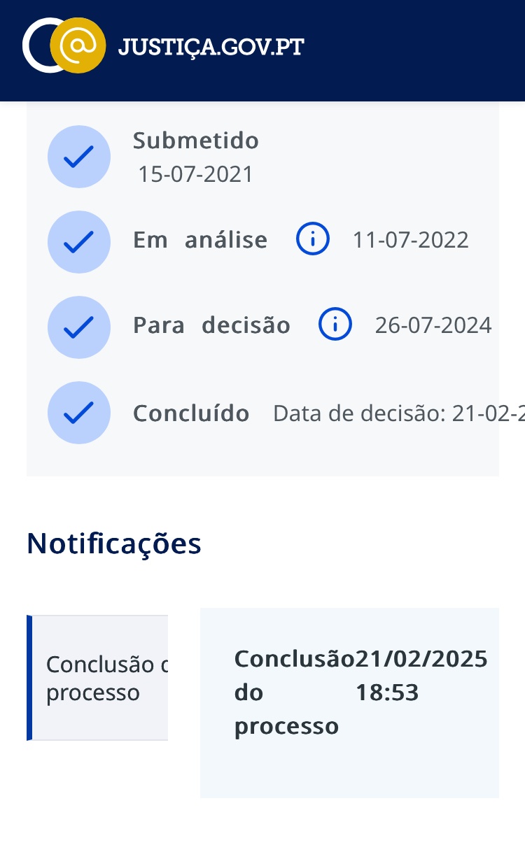 Hoje eu li no Facebook que foi concluído um processo de julho de 2021.