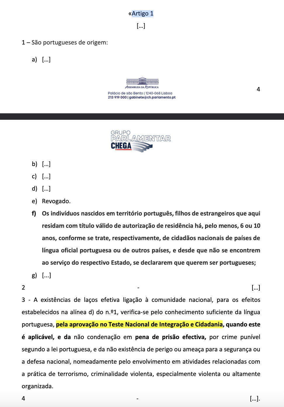 Pessoal tenho dúvidas, hoje verifiquei que no "projeto de lei di grupo Chega" menciona uma alteração acerca da aquisição de nacionalidade portuguesa pelo casamento e a alteração menciona sobre um "teste nacional de integração e cidadania".