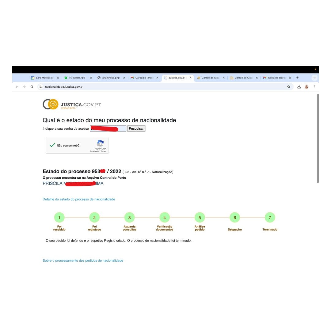 Abaixo foto do meu processo concluído e como, após a mudança do site, está! =(