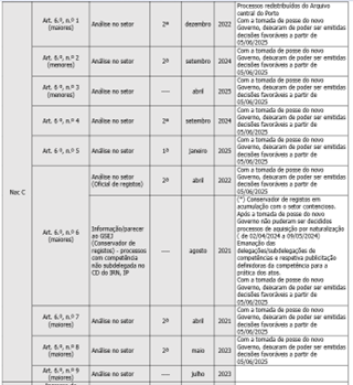 Mas acabei de ver essa tabela que um outro usuário desse fórum postou na discussão Status de andamento de processos CRC Lisboa e ACP. Quem postou disse que a tabela foi recebida hoje. Copiei apenas a parte que interessa da informação, que é composta por três tabelas. No topo da 1a tabela diz que é o estado do serviço em maio/25.