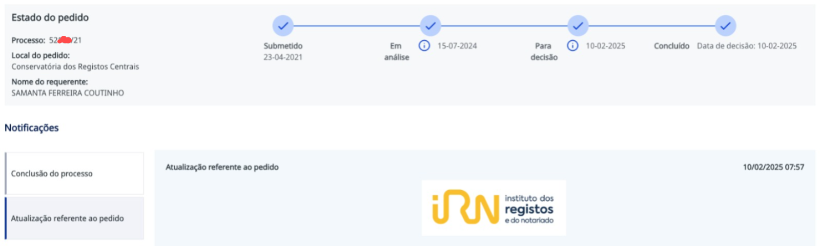 Vi aqui que algumas pessoas que tiveram o processo concluído em janeiro/25, não receberam o e-mail com o número do assento e tiveram que enviar e-mail solicitando essa informação e depois de alguns dias a Conservatória respondeu com o número solicitado.