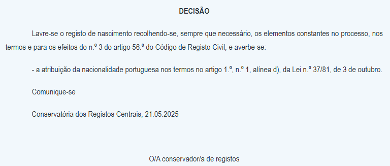 Eu, XXXXX, nascido em XX/XX/XXXX natural de XXX, estado XXX, Brasil, em ( dia da submissao da nacionalidade), dei entrada no pedido de atribuição de nacionalidade portuguesa (processo n° xxxx), por meio da Conservatória XXXX, em razão de ser neto de avô português.