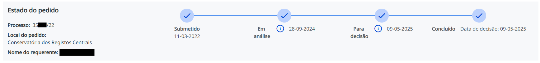 @svidalrj oi tudo bem? Poderia informar se o processo de neto era de menor de idade ou maior de idade +75 anos com prioridade? Poderia postar um print da tela de acompanhamento omitindo informações sensíveis quanto ao número do processo etc, por gentileza? Pq até então o que tínhamos era que Lisboa tava analisando os pedidos de junho de 21, ver esse salto pra setembro seria de muita felicidade pra quem tá aguardando kkkkkkkk