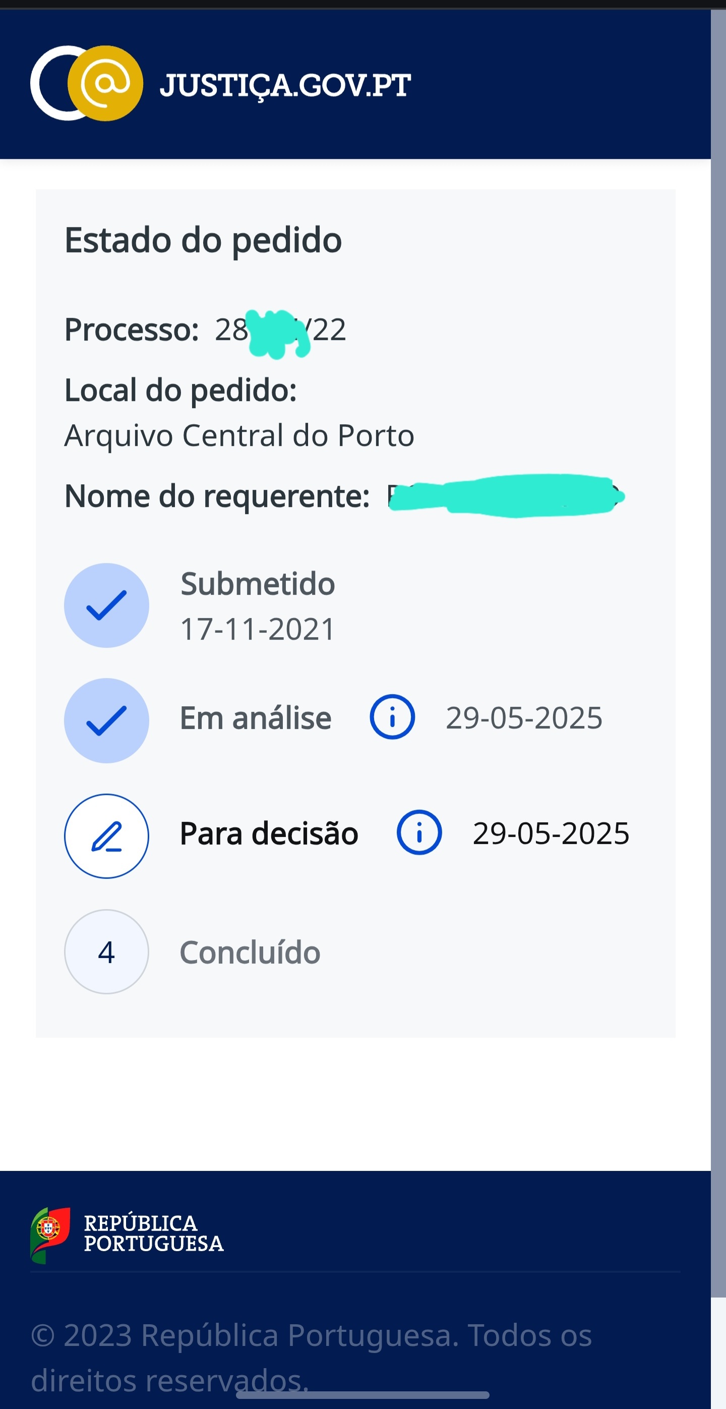 Processo de neto do meu pai foi dado entrada em Lisboa em 01/2022 e ainda está parado na bolinha 1.
