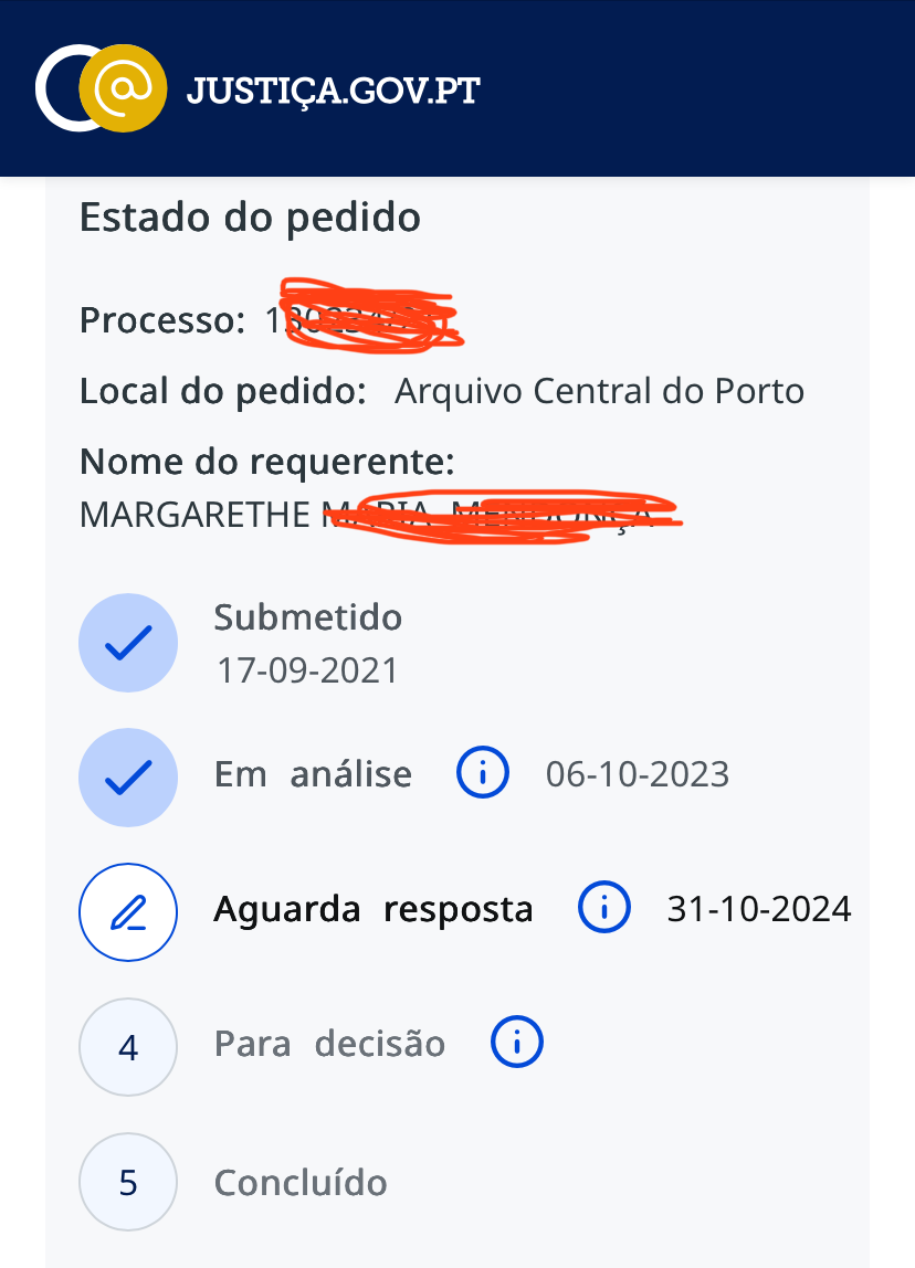 Meu processo é 28xxx/22, foi entregue em 16/11/21. Encontra-se na ACP desde 25/05/23; e está na fase SUBMETIDO. Fiz todo o processo com a ajuda de todos os membros da administração do Forum. Tenho acompanhado todas as informações quanto ao andamento dos processos, e neste momento estou sentindo a angústia e tristeza pela demora da finalização do processo. Gostaria que alguém me indicasse um advogado para eu ter um contato em Portugal para poder acompanhar o processo de neto. Muito obrigado e um abraço a todos.